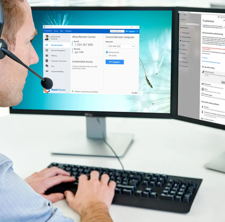 팀뷰어를 통해 고객이나 직원에게 즉각적인 원격지원을 제공할 수 있습니다. 흔히 겪을 수 있는 컴퓨터 고장, 시스템의 결함 등의 장치 고장이 나는 경우 회사의 비지니스가 멈추는 경우가 있을 수 있습니다. IT전문가는 현장 서비스를 대신하여 팀뷰어를 통해 원격으로 지원을 즉각적으로 제공할 수 있습니다.