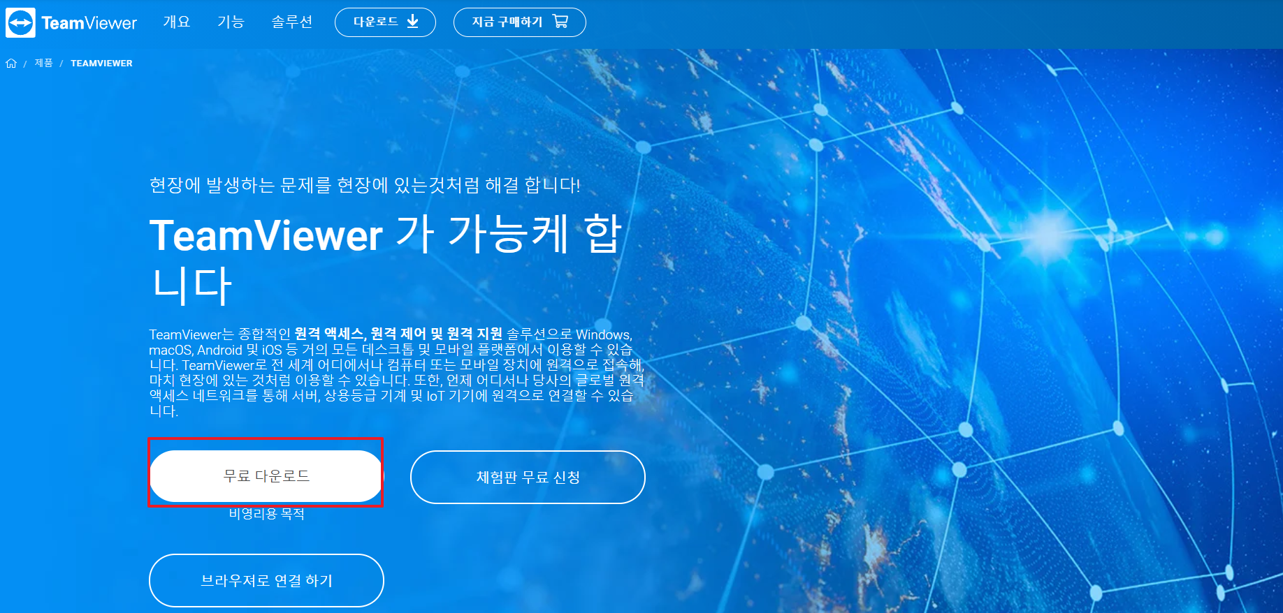 팀뷰어(TeamViewer) 무료 다운로드 방법은 팀뷰어 공식 홈페이지를 통해 다운로드 받는 것입니다. 저 또한 팀뷰어 공식홈페이지를 통해 다운로드 받는 방법을 아래에 설명드릴 예정이니, 잘 따라와주시면 됩니다.