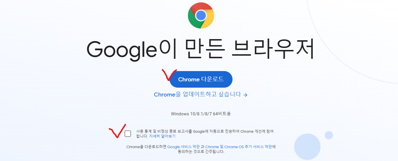 그럼 아랫부분 체크 해제를 하고 Chrome 다운로드를 눌러줍니다.