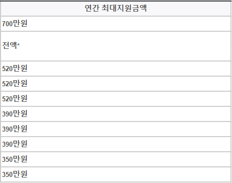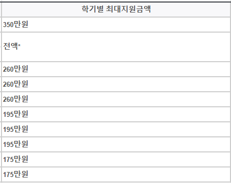 2022년 국가장학금 지원금액은 아래와 같습니다.