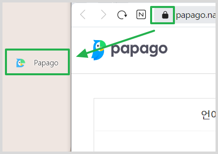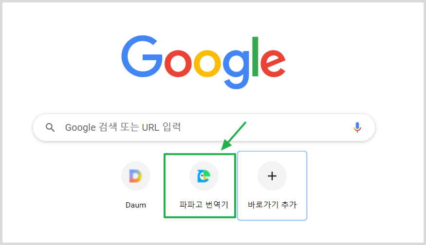 그럼 아래와 같이 크롬 내에 파파고 번역기 바로가기가 설치된 것을 보실 수 있습니다. 해당 파파고 번역기 바로가기를 통해서 바로 파파고 번역기로 가실 수 있습니다.