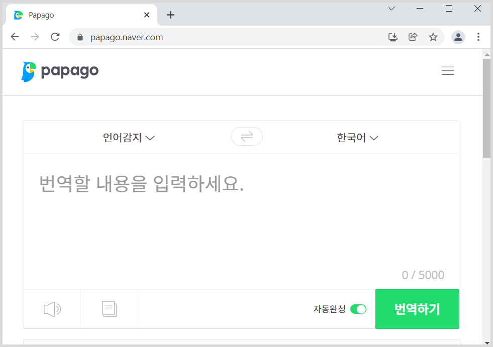 먼저 사용하고 계신 웹브라우저에서 파파고 번역기로 가주셔야 합니다. 이때 웹브라우저는 크롬, 웨일, 엣지, 인터넷 익스플로러 등 아무거나 상관이 없습니다.