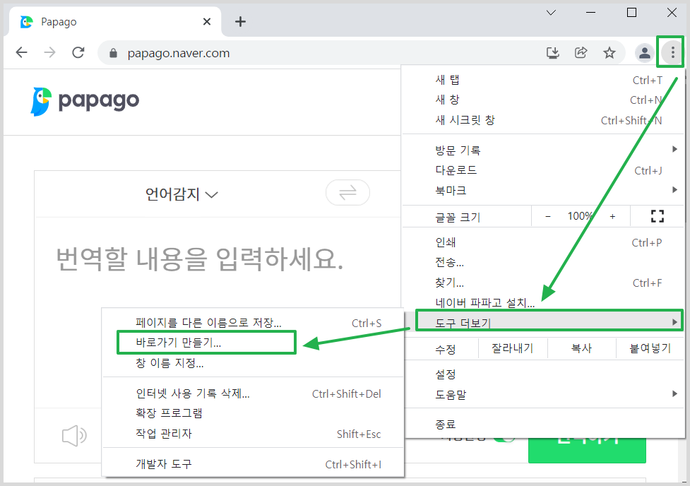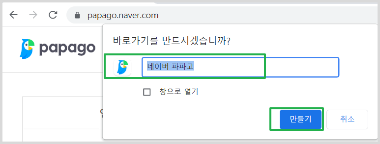 크롬을 사용해서 바탕화면에 파파고 바로가기 만들기
