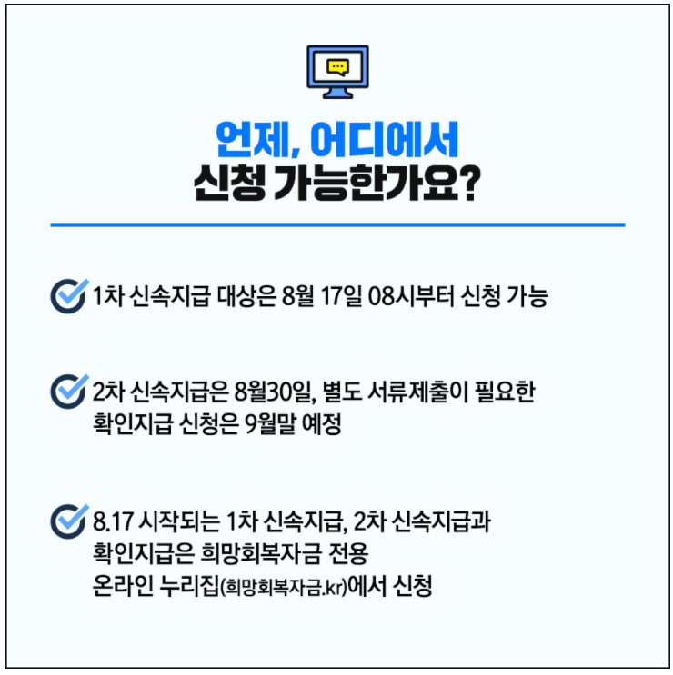 - 8. 19(목) : 소상공인 희망회복자금 신청 전체 가능