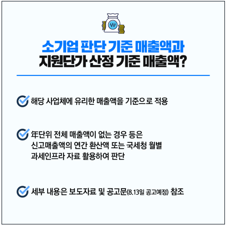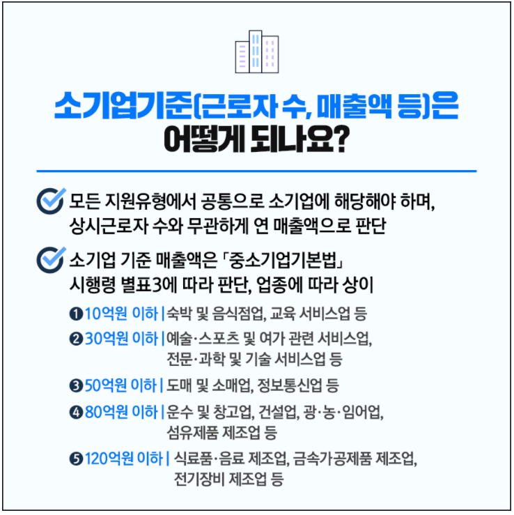 - 매출규모 : 매출액이 소기업 및 소상공인에 해당