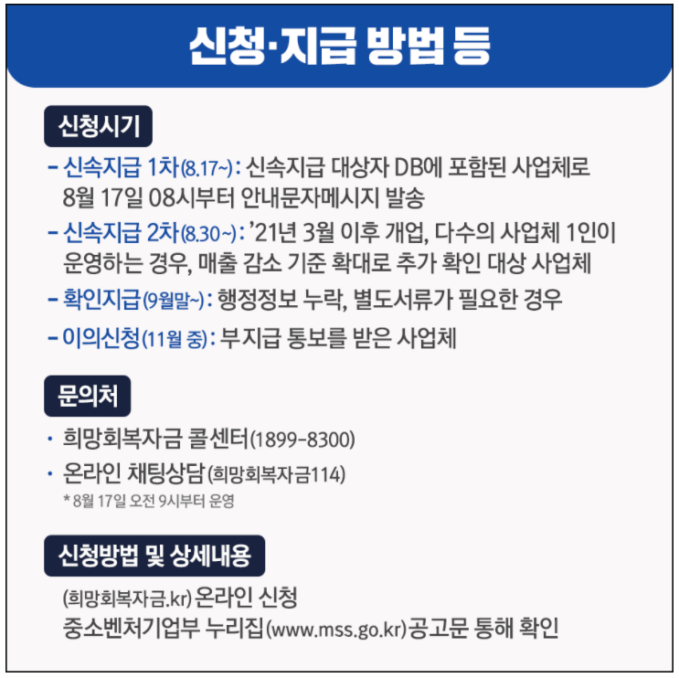- 신청 방법은 소상공인 희망회복자금 1차 신속지급과 동일