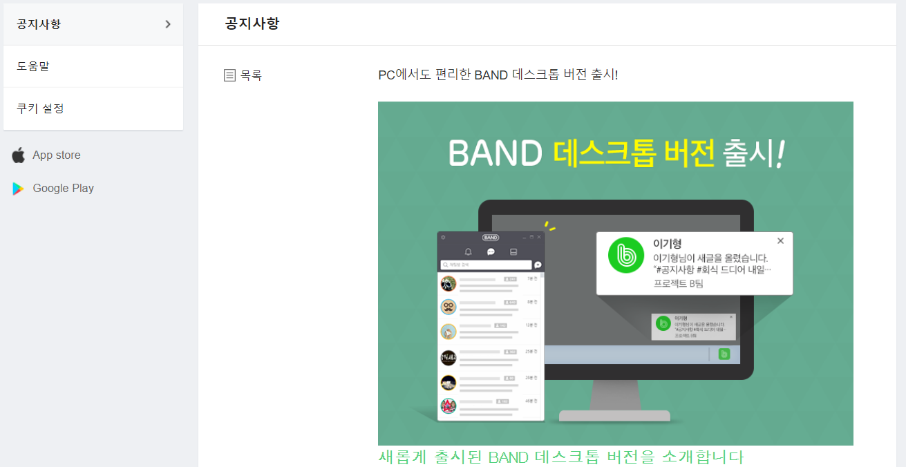 많은 분들이 네이버 밴드 pc버전 다운로드가 가능한 것에 대해서 알지 못하십니다. 그 이유는 네이버 밴드에서 pc버전 다운로드를 게시판 공지사항을 통해서만 알렸기 때문인데요. 따라서 조금 찾기가 불편하게 되어있습니다.