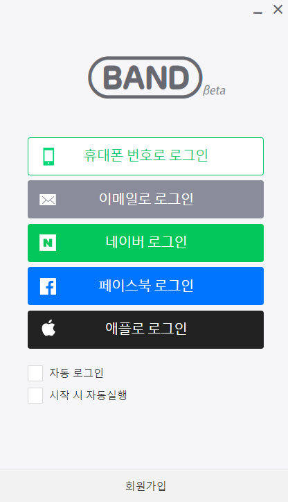 로그인은 휴대폰이나 이메일, 네이버, 페이스북, 애플로 로그인을 하실 수 있습니다. 이상으로 네이버 밴드 pc버전 다운로드에 대해서 알아보았습니다.