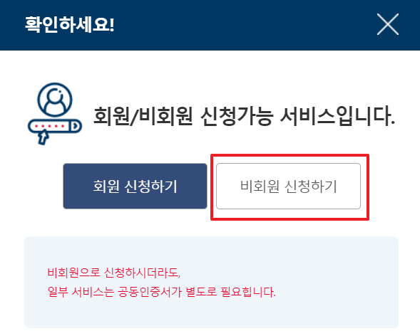 3. 회원이 있으신 분은 '회원신청하기' / 회원이 아니신분들은 '비회원 신청하기'를 해줍니다.