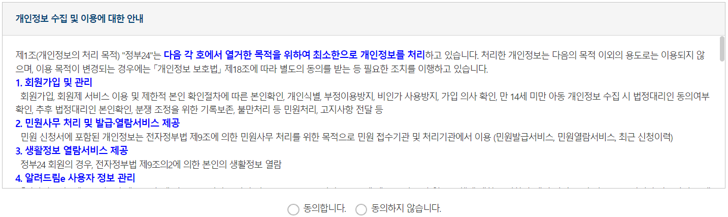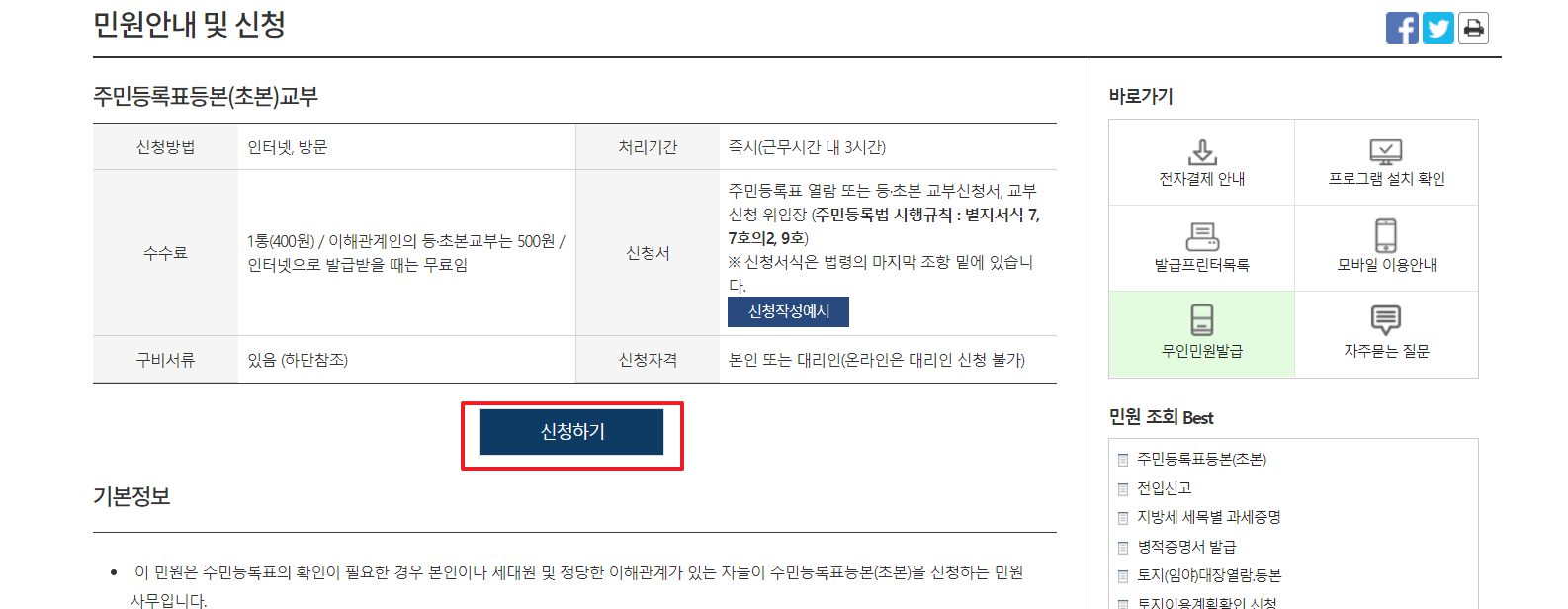 2. 민원안내 및 신청 밑의 '신청하기'를 눌러줍니다.